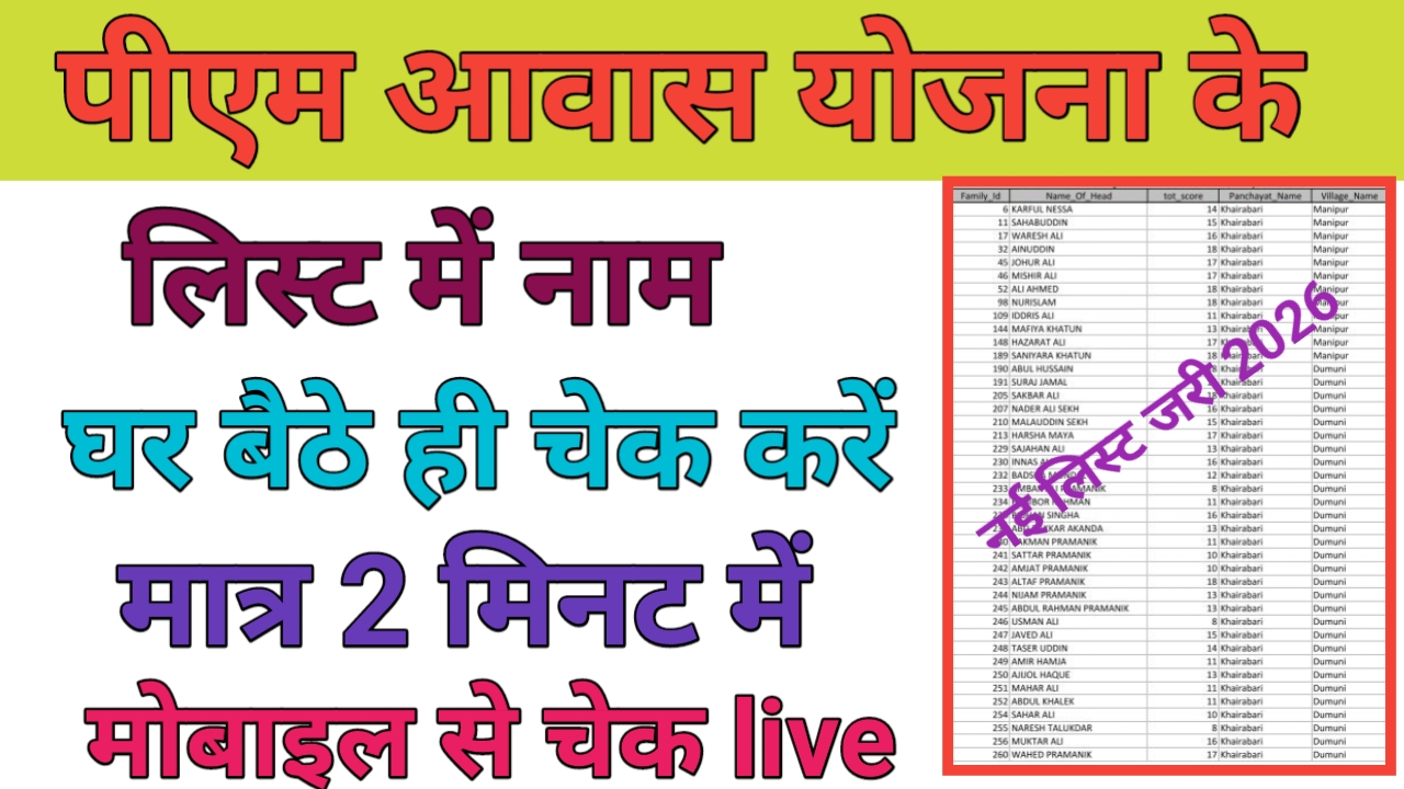 हेलो दोस्तों मैं आप सभी को आज के इस आर्टिकल में स्वागत करता हूँ दोस्तों आप लोगो को जानकारी देंगे की पीएम आवास योजना के लिस्ट में नाम चेक कैसे करें | दोस्तों प्रधानमंत्री आवास योजना का नया लिस्ट जारी किया गया है | अगर आपका भी नाम इस लिस्ट में है तो आपको इस योजना का लाभ वित्तीय 2026 में मिलने वाला है | इस योजना का लाभ वैसे गरीब परिवार को मिलेगा जो अपना पक्का का मकान बनाने में सक्षम नहीं होते है और उनका आर्थिक स्थिति बहुत ही ख़राब होता है, आर्थिक रूप से कमजोर होते है | वही ग्रैब परिवारों को इस योजना का लाभ प्रदान किया जाएगा ताकि सभी गरीब परिवार भी अपना जीवन यापन अच्छा से करें | आज के इस आर्टिकल में इसकी पूरी जानकारी को विस्तार से बताएंगे | इसके लिए आपको इस आर्टिकल को ध्यान पूर्वक अंत तक पढ़ना होगा |